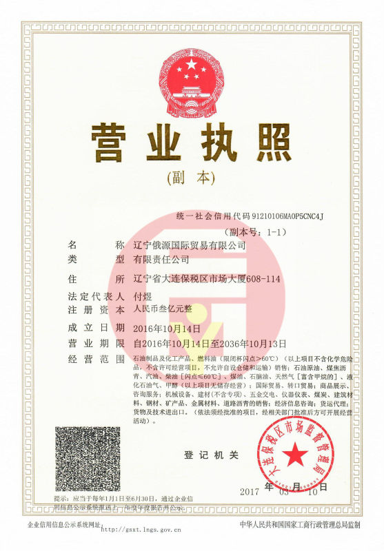 辽宁俄源国际贸易有限公司是国家外经贸局、海关总署批准的有进出口权的公司,公司有雄厚的经济基础,有自己的注册商标。有强大的关系网络,随着我国加入WTO,进出口贸易的日益增涨,公司股东经过研究决定,特成立辽宁俄源国际贸易公司,公司的成立填补了辽宁省在对俄贸易中与俄罗斯等国家关于油品进出口的空白。公司会以良好的信誉赢得客户的信赖,促进与世界各国的经济技术交流,我们热忱的希望:你我携手,共创美好未来!