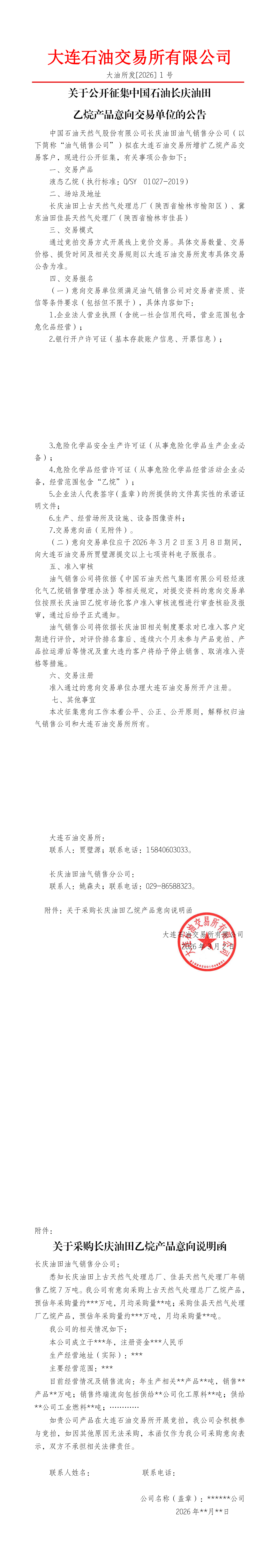 关于公开征集长庆油田分公司乙烷产品意向交易单位的公告