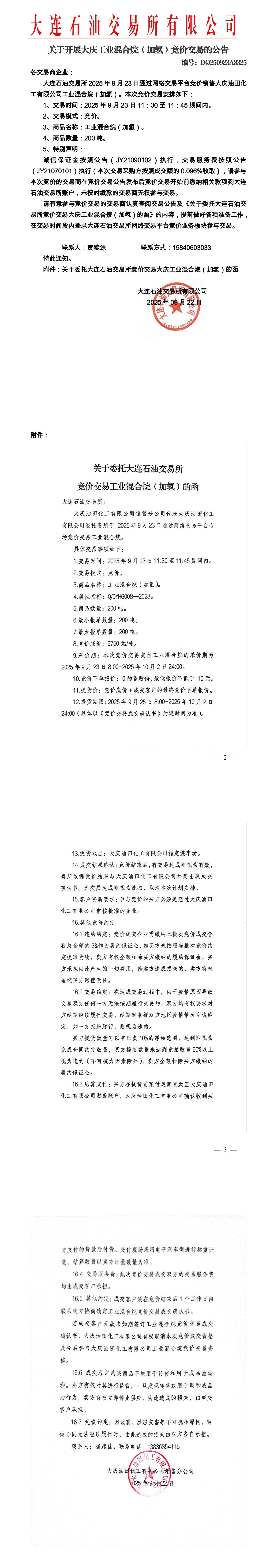 关于开展大庆工业混合烷竞价交易的公告(DQ250923A8325)