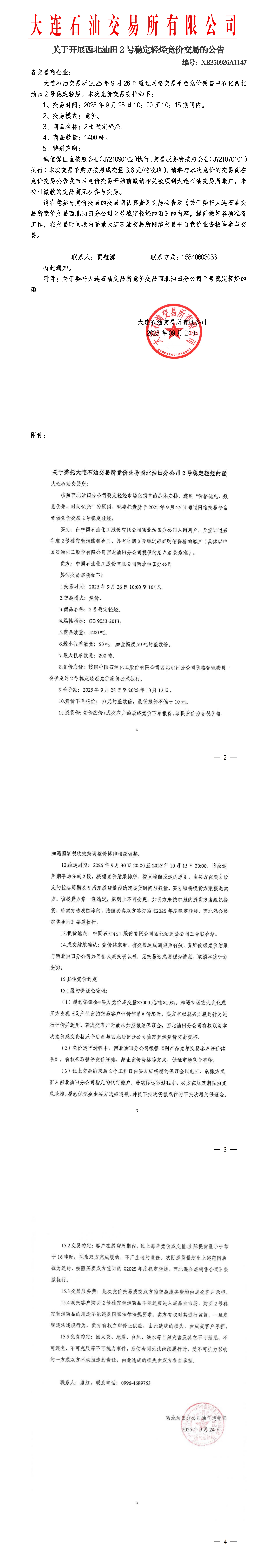关于开展西北油田稳定轻烃竞价交易的公告(XB250926A1147)