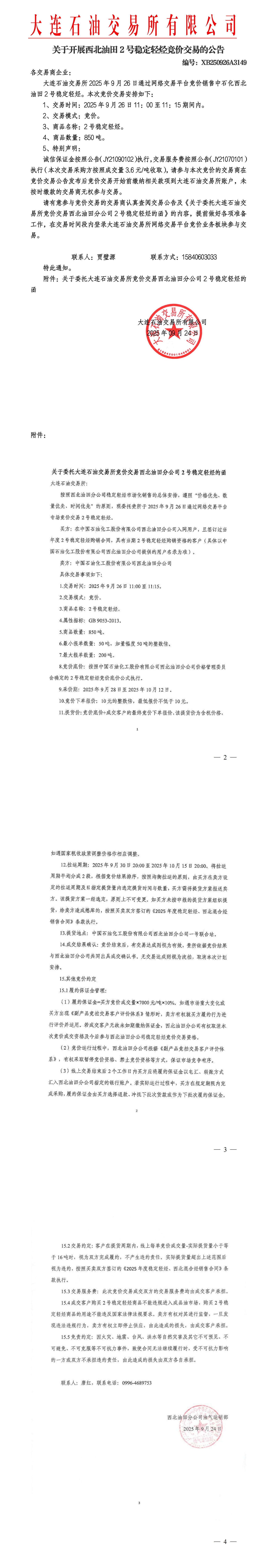 关于开展西北油田稳定轻烃竞价交易的公告(XB250926A3149)