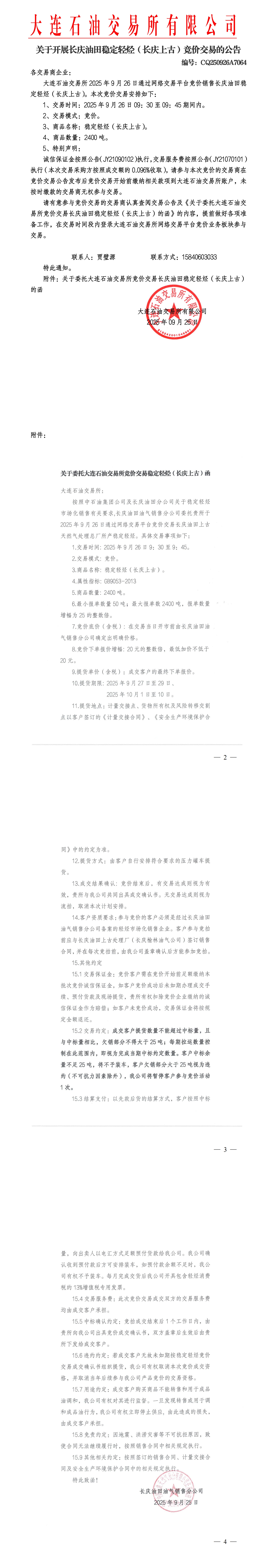 关于开展长庆油田稳定轻烃(长庆上古)竞价交易的公告(CQ250926A7064)