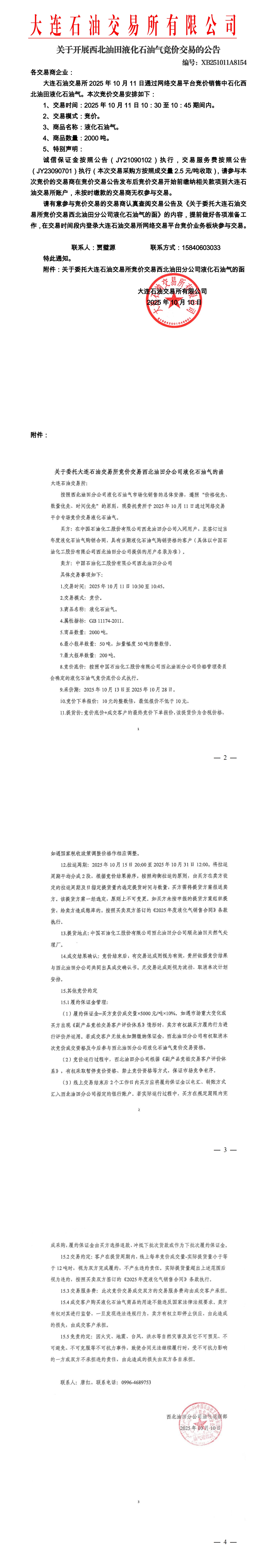 关于开展西北油田液化石油气竞价交易的公告(XB251011A8154)