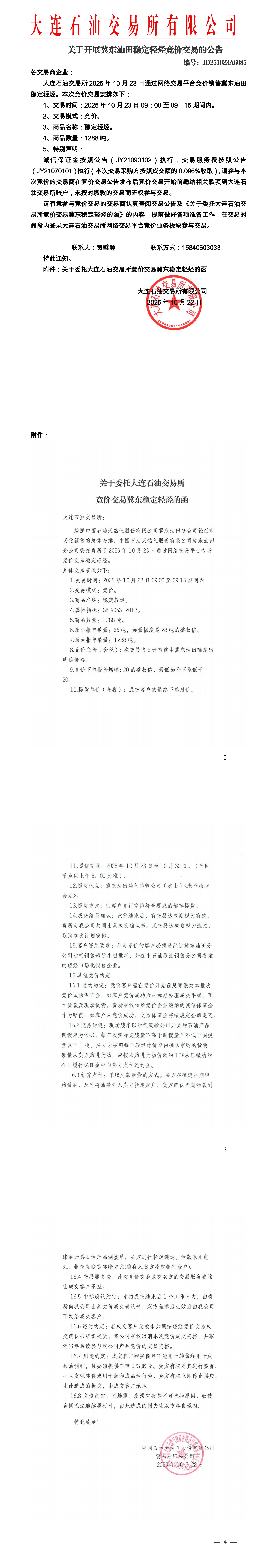 关于开展冀东油田稳定轻烃竞价交易的公告(JD251023A6085)