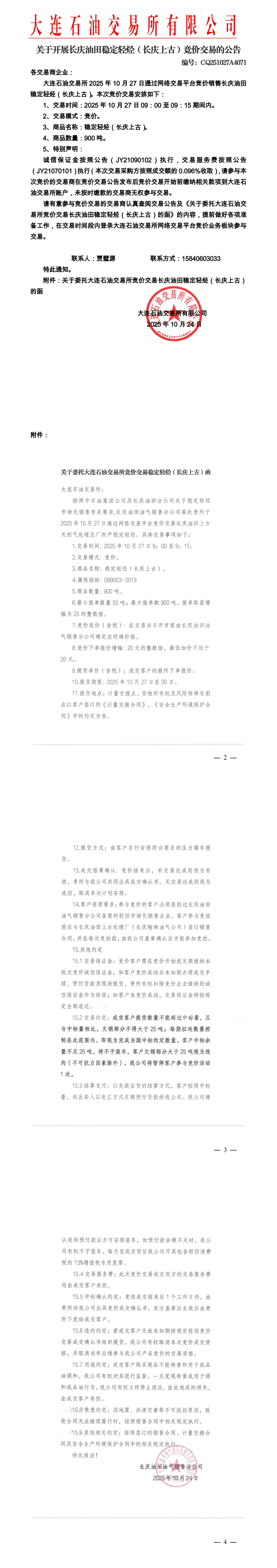 关于开展长庆油田稳定轻烃(长庆上古)竞价交易的公告(CQ251027A4071)