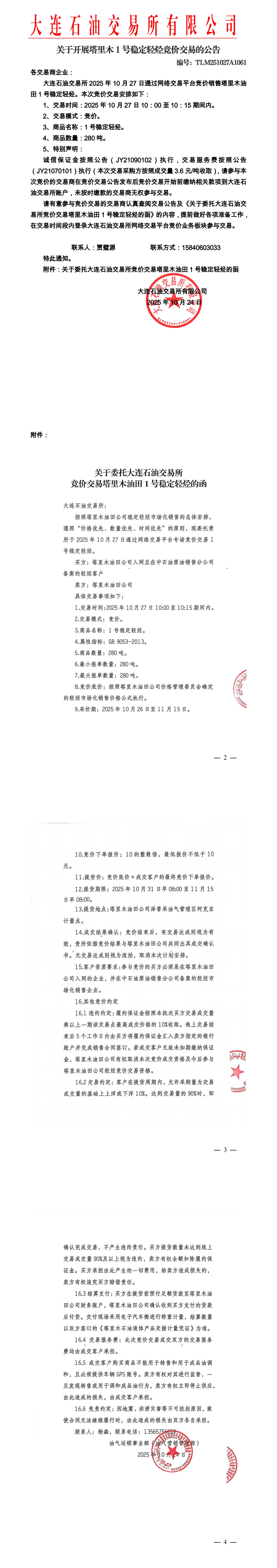 关于开展塔里木稳定轻烃竞价交易的公告(TLM251027A1061)