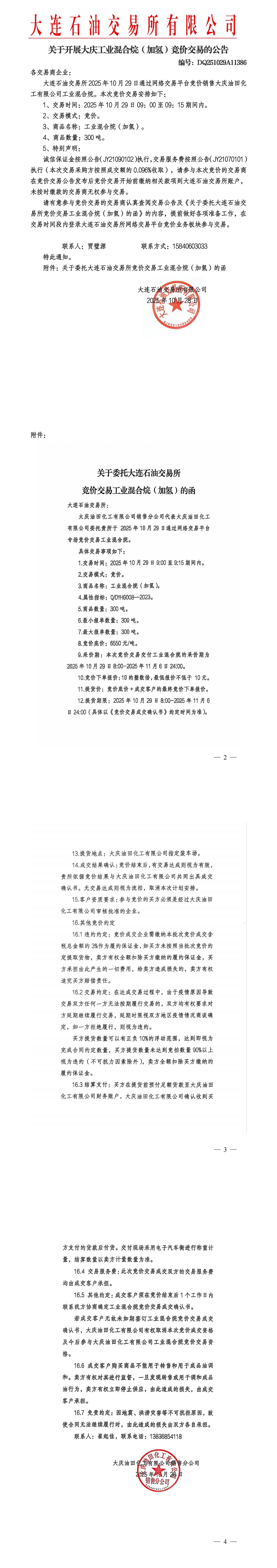 关于开展大庆工业混合烷竞价交易的公告(DQ251029A11386)