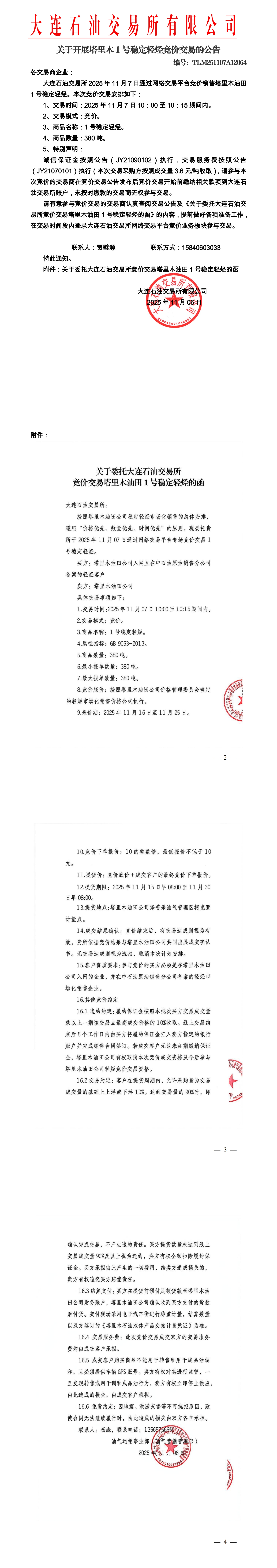关于开展塔里木稳定轻烃竞价交易的公告(TLM251107A12064)