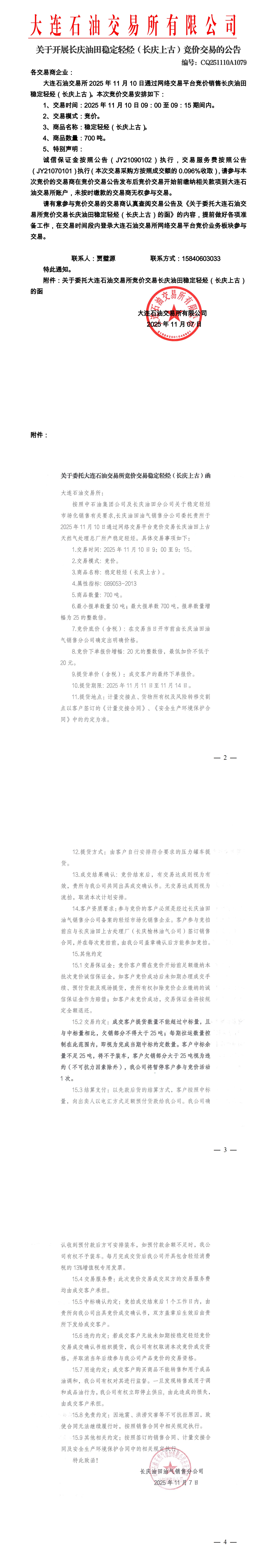 关于开展长庆油田稳定轻烃(长庆上古)竞价交易的公告(CQ251110A1079)