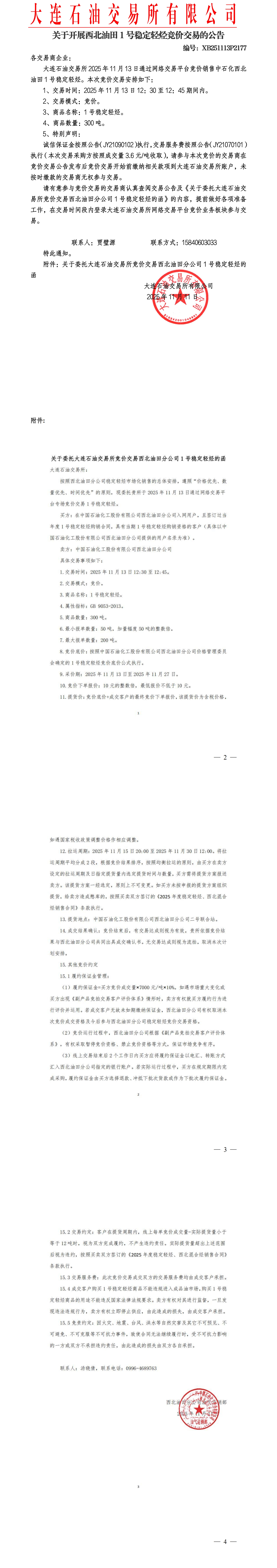 关于开展西北油田稳定轻烃竞价交易的公告(XB251113P2177)
