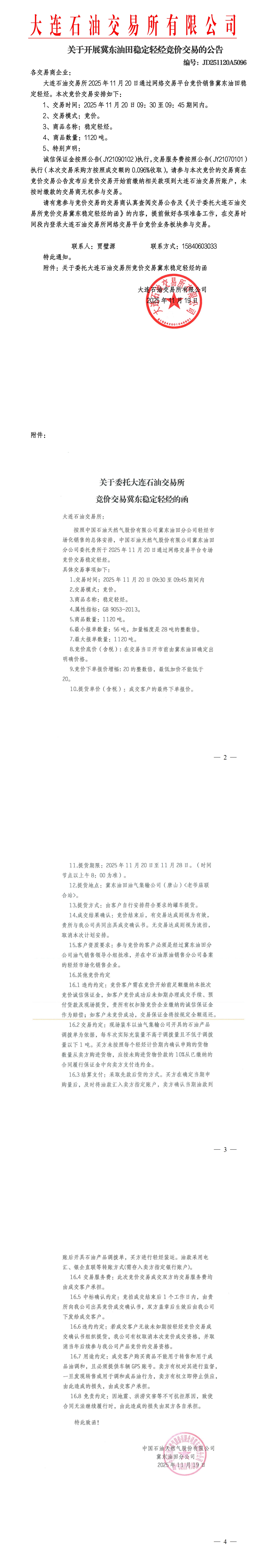关于开展冀东油田稳定轻烃竞价交易的公告(JD251120A5096)