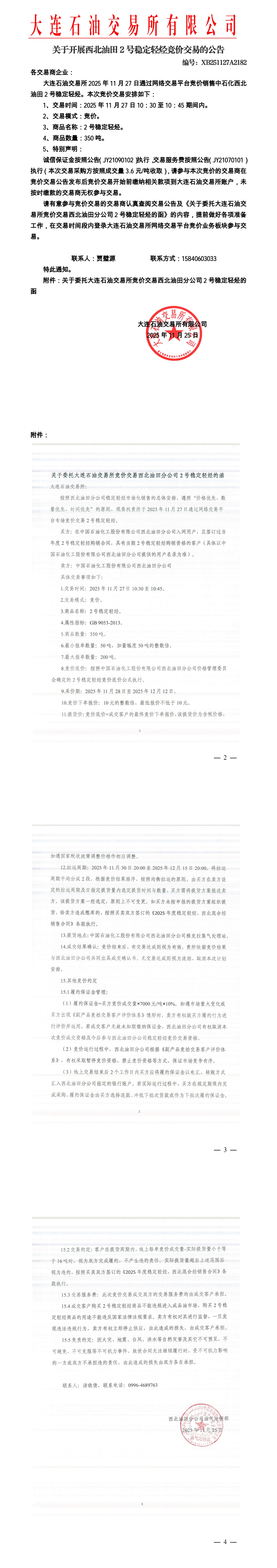 关于开展西北油田稳定轻烃竞价交易的公告(XB251127A2182)