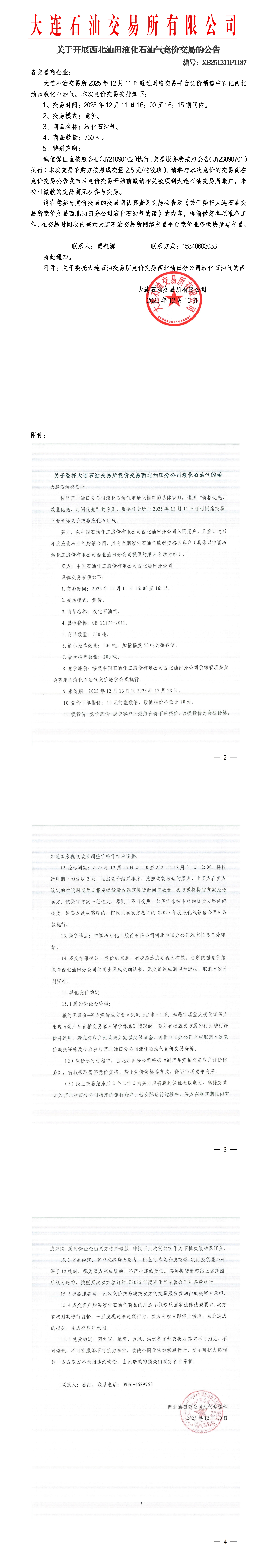 关于开展西北油田液化石油气竞价交易的公告(XB251211P1187)