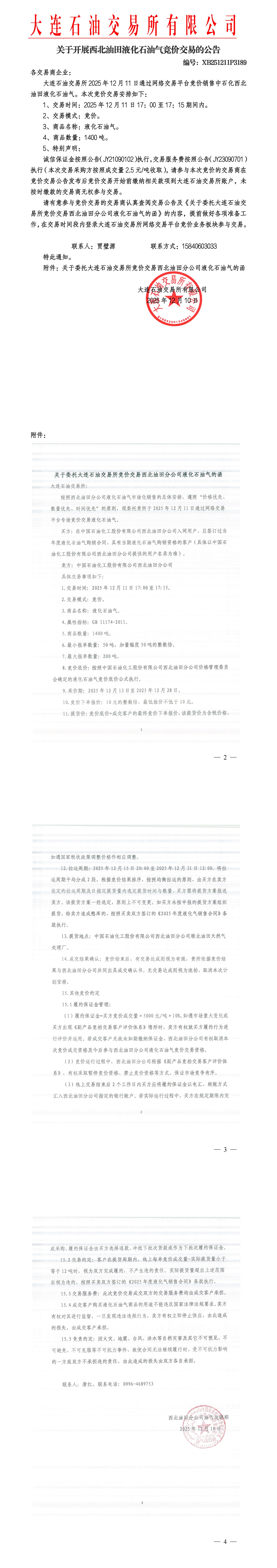 关于开展西北油田液化石油气竞价交易的公告(XB251211P3189)