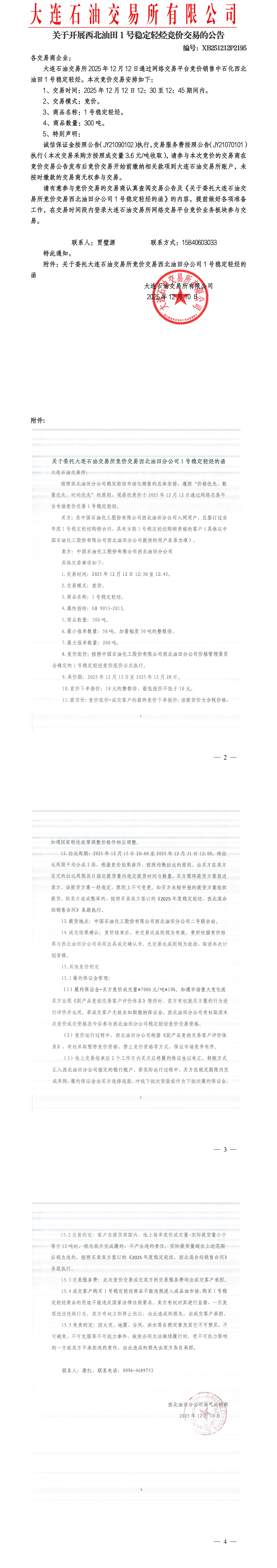 关于开展西北油田稳定轻烃竞价交易的公告(XB251212P2195)