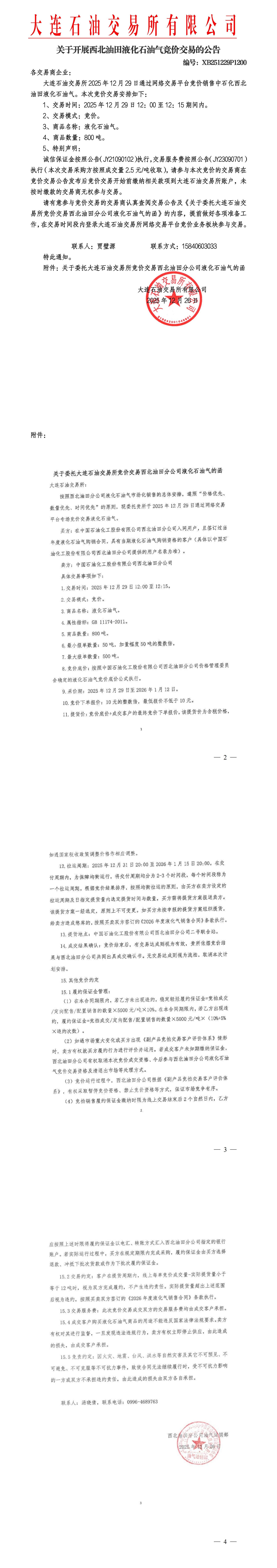 关于开展西北油田液化石油气竞价交易的公告(XB251229P1200)