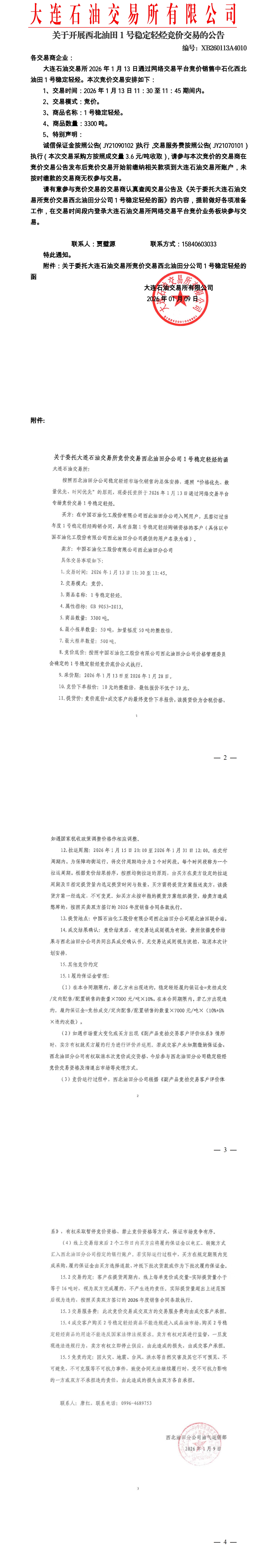 关于开展西北油田稳定轻烃竞价交易的公告(XB260113A4010)