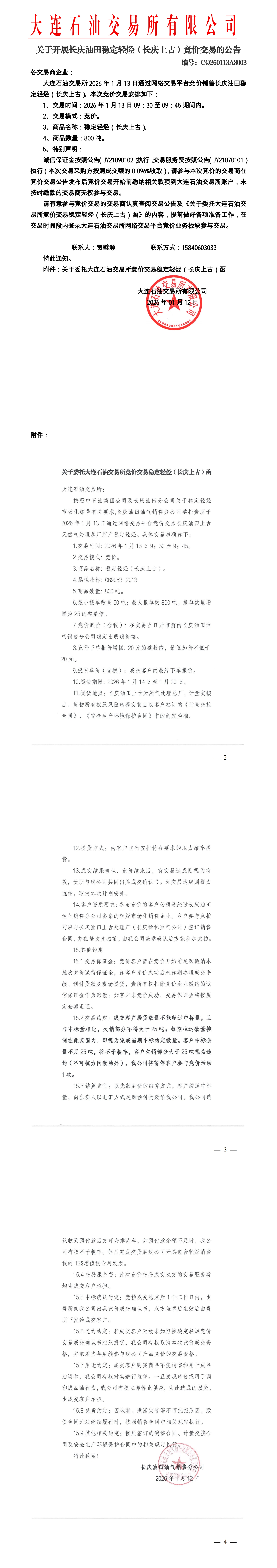 关于开展长庆油田稳定轻烃(长庆上古)竞价交易的公告(CQ260113A8003)