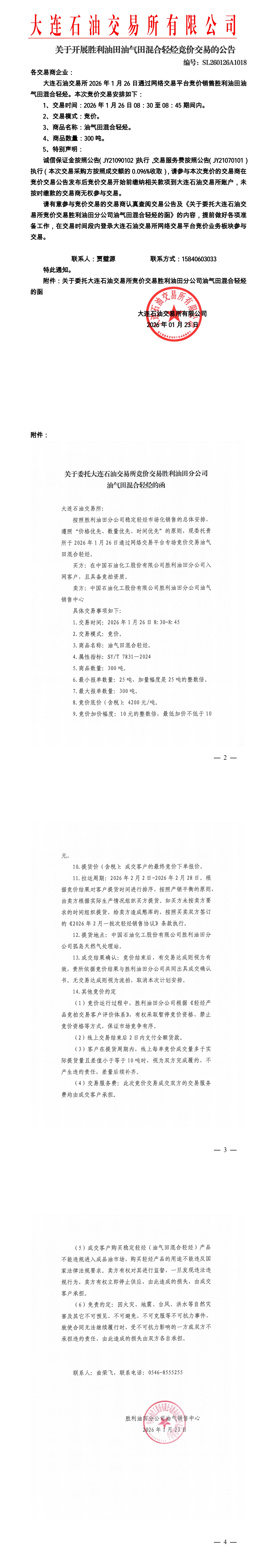关于开展胜利油田油气田混合轻烃竞价交易的公告(SL260126A1018)