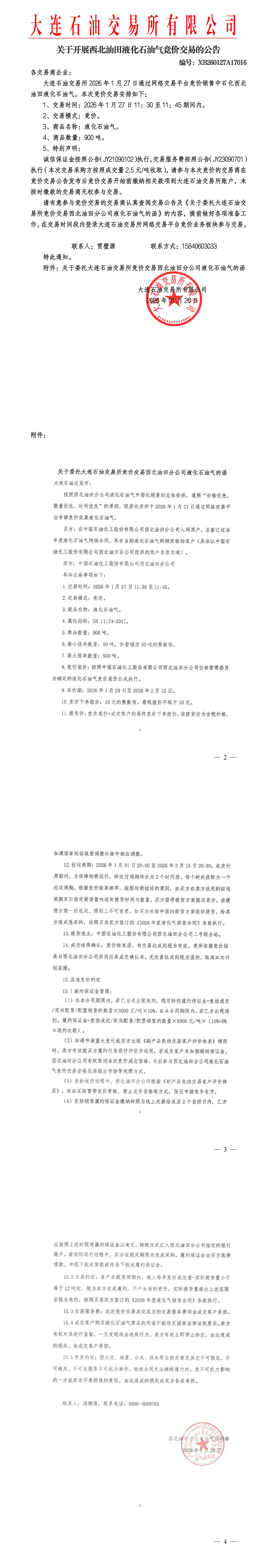 关于开展西北油田液化石油气竞价交易的公告(XB260127A17016)