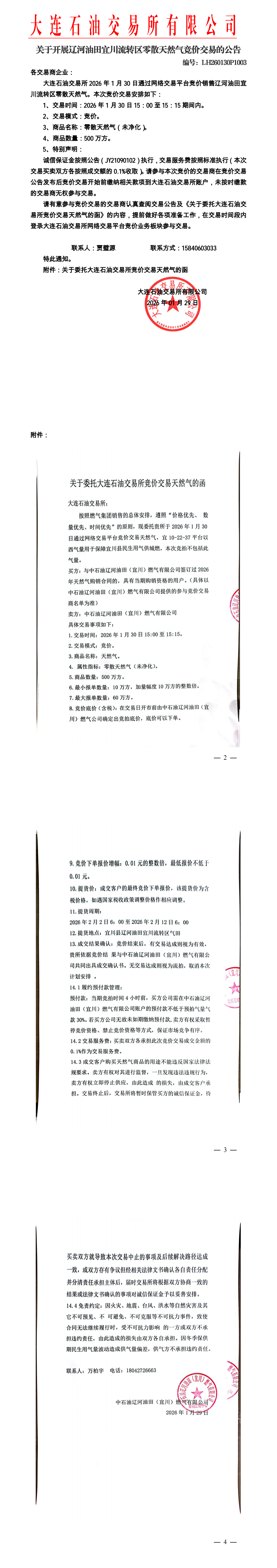 关于开展辽河油田零散天然气竞价交易的公告(LH260130P1003)