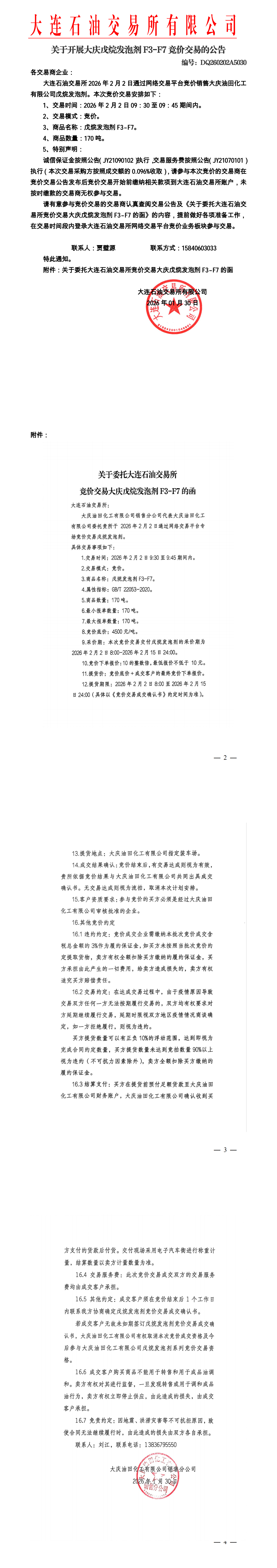 关于开展大庆戊烷发泡剂竞价交易的公告(DQ260202A5030)