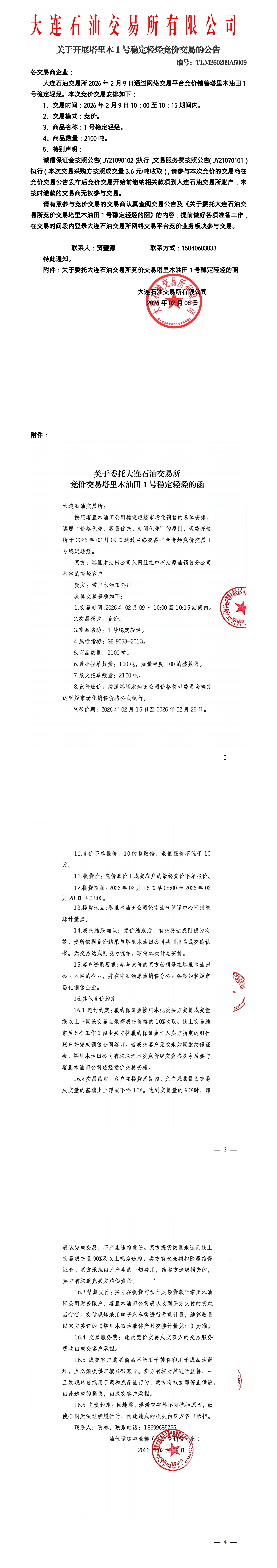 关于开展塔里木稳定轻烃竞价交易的公告(TLM260209A5009)