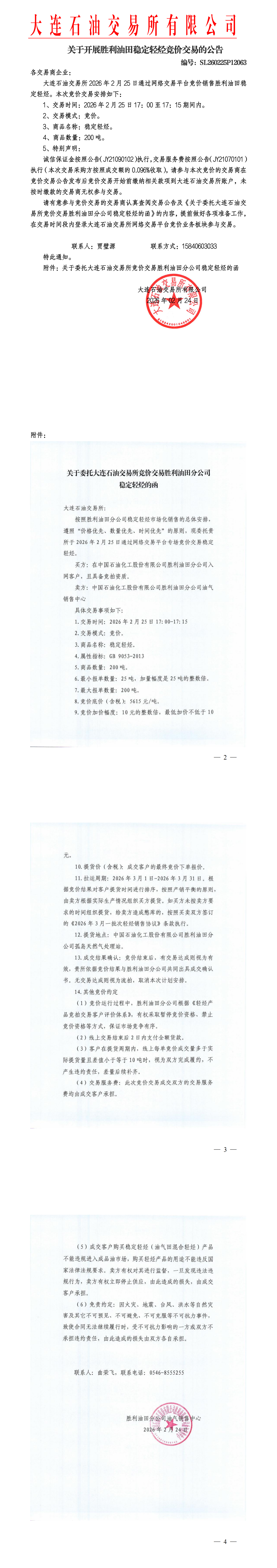 关于开展胜利油田稳定轻烃竞价交易的公告(SL260225P12063)