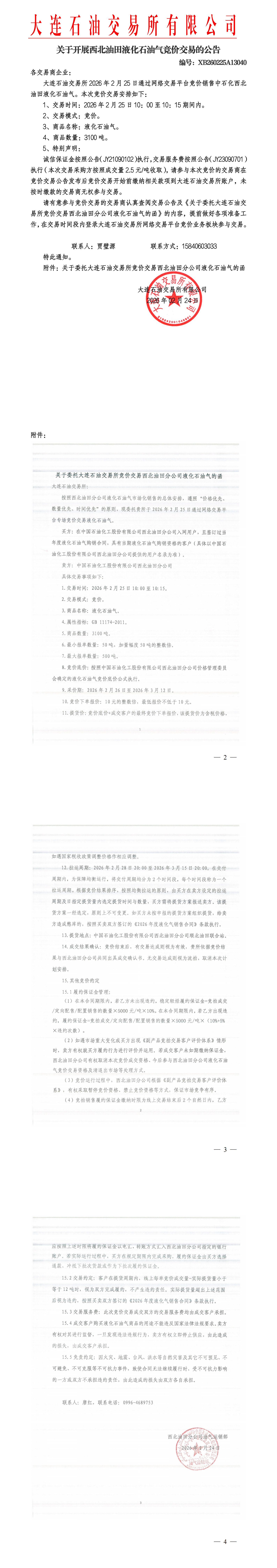 关于开展西北油田液化石油气竞价交易的公告(XB260225A13040)