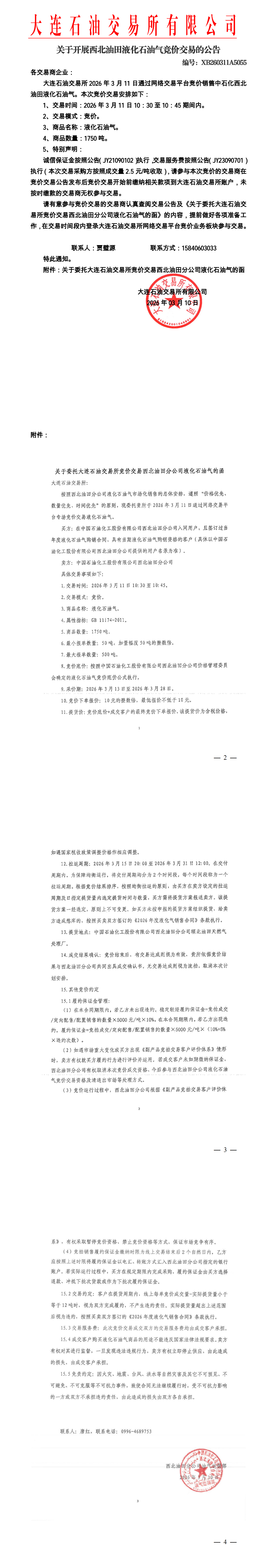 关于开展西北油田液化石油气竞价交易的公告(XB260311A5055)