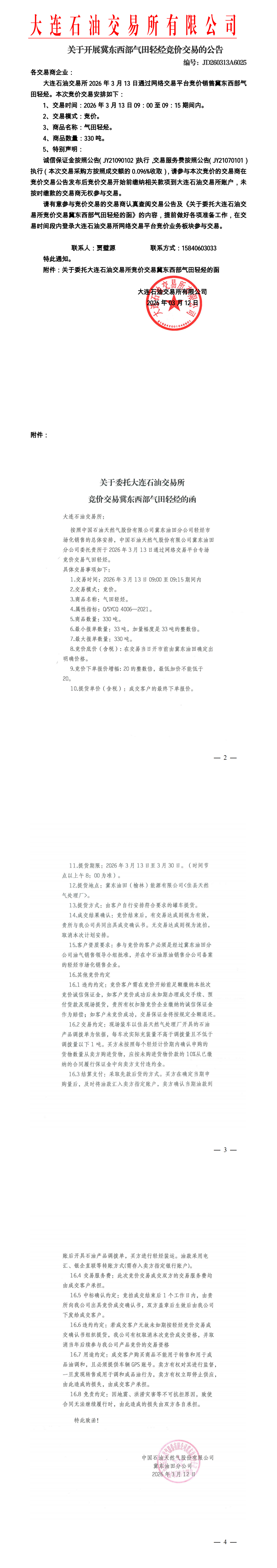 关于开展冀东西部气田轻烃竞价交易的公告(JD260313A6025)