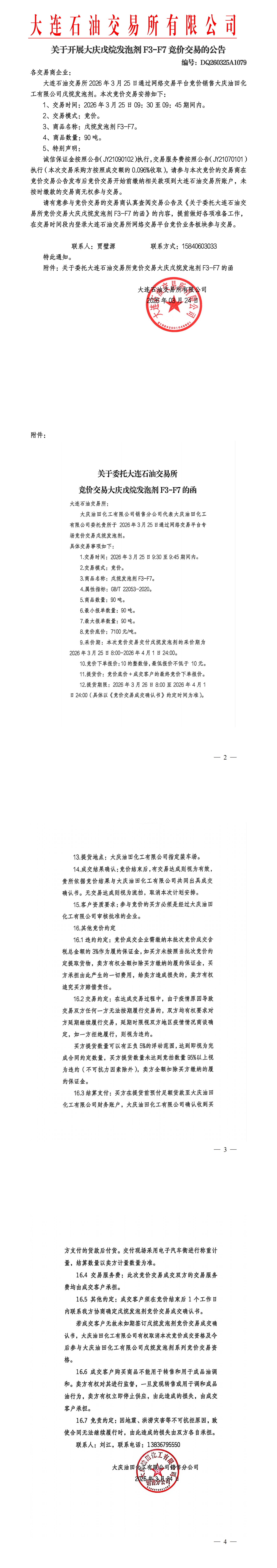 关于开展大庆戊烷发泡剂竞价交易的公告(DQ260325A1079)