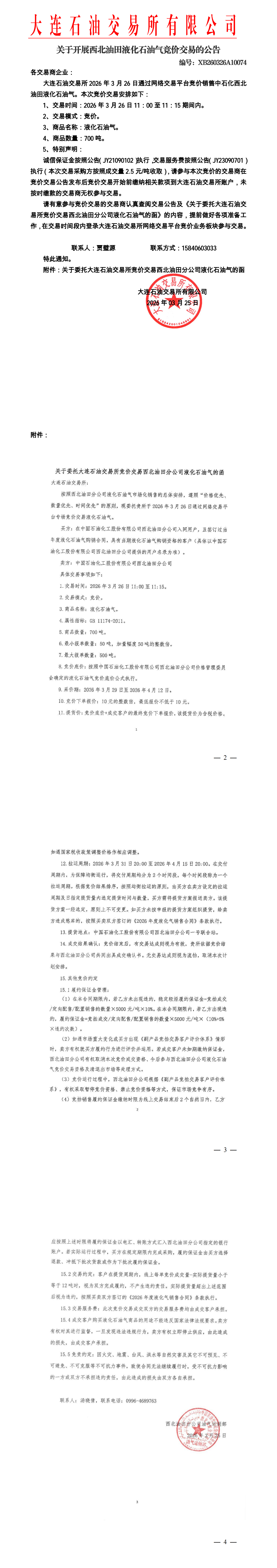 关于开展西北油田液化石油气竞价交易的公告(XB260326A10074)
