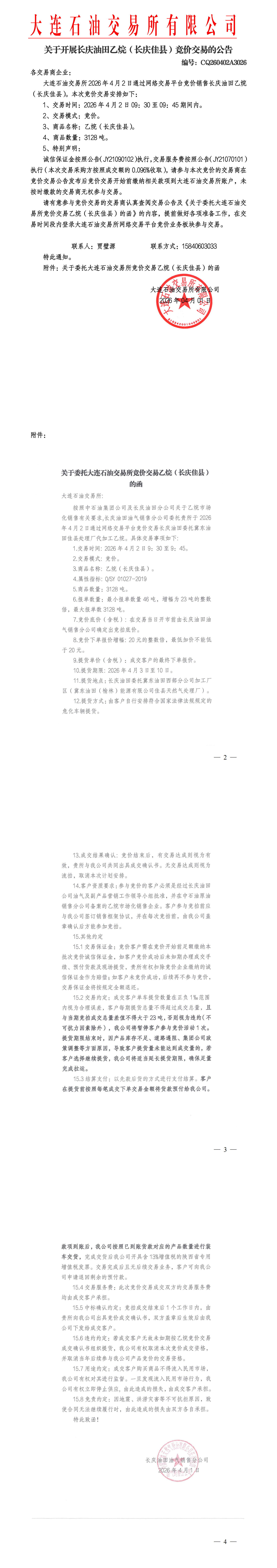 关于开展长庆油田乙烷(长庆佳县)竞价交易的公告(CQ260402A3026)