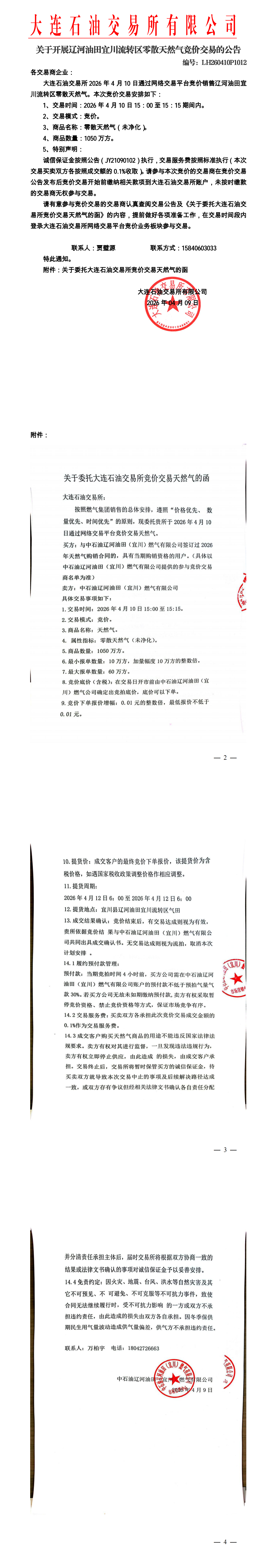 关于开展辽河油田零散天然气竞价交易的公告(LH260410P1012)